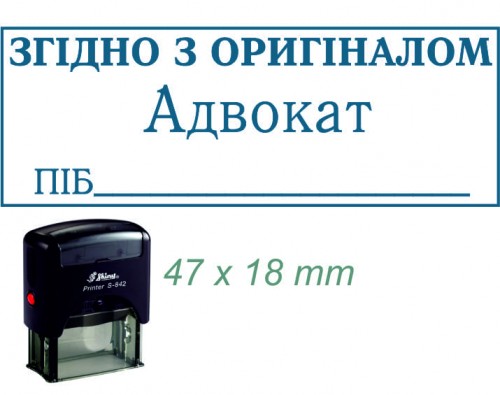 •  Зразок штамп адвокат "Згідно з оригіналом" 47 х 18 мм